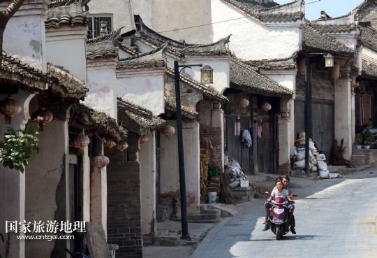 這條南北走向的小街,全長約5里,現(xiàn)存明清時代的建筑700余間,大多保存完好。其中有豪紳商賈所建的會館、廟宇,也有一般的民房,建筑造型各有特色。古街的宅樓構(gòu)件,無不以石雕、磚雕、木雕藝術(shù)烘托而成。各種造型的石坊、門墩、柱礎(chǔ)、檐楣,可謂各具匠心,生動逼真。