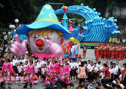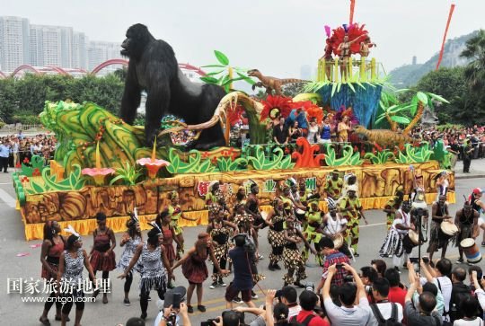 國家旅游地理 廣西柳州10月1日訊 9月30日,一輛巡游的花車經過廣西柳州市駕鶴路。 當日,2013中國柳州國際水上狂歡節(jié)以一場“狂歡大巡游”拉開帷幕。10輛造型各異的花車和國內外各具特色的演藝團體為市民和游客帶來一場歡樂盛宴。