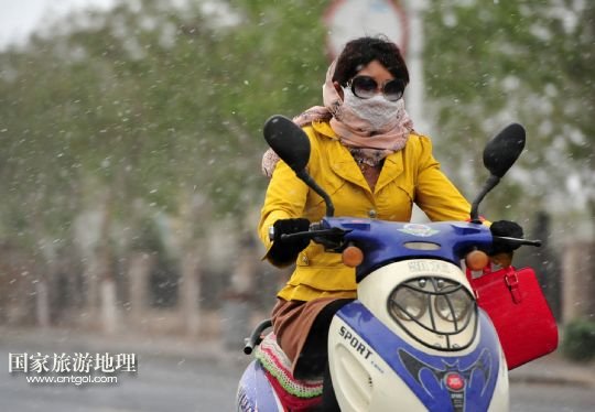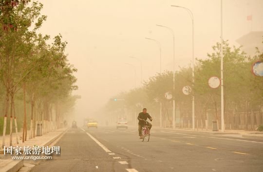 國家旅游地理 寧夏中衛(wèi)4月24日訊 4月24日,在寧夏回族自治區(qū)中衛(wèi)市,一位市民在沙塵天氣中騎行。當(dāng)日,寧夏回族自治區(qū)中北部地區(qū)遭遇強(qiáng)沙塵天氣,寧夏氣象臺于當(dāng)日7時40分發(fā)布沙塵暴黃色預(yù)警信號:預(yù)計(jì)未來12小時內(nèi)全區(qū)大部有5-6級偏北風(fēng),陣風(fēng)7-8級,伴有揚(yáng)沙或浮塵天氣,銀川、石嘴山、吳忠、中衛(wèi)四市的部分地區(qū)可能出現(xiàn)能見度小于1000米的沙塵暴天氣。 /新華社記者 彭昭之 攝