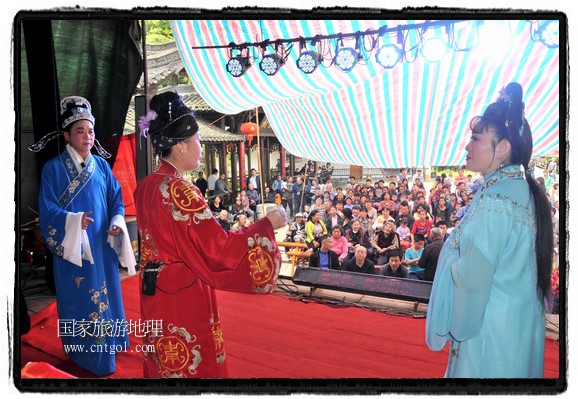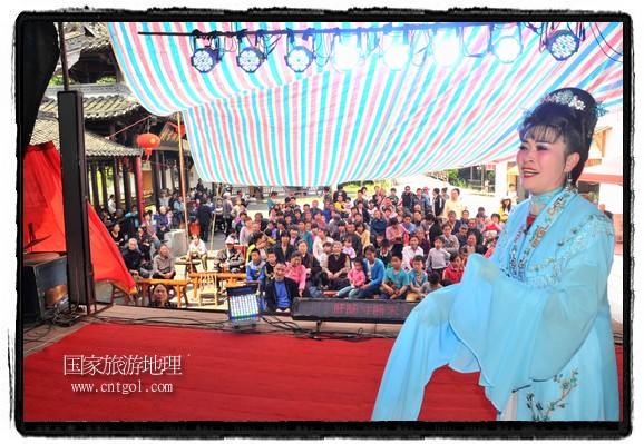 國家旅游地理 江西上饒5月1日訊(特約記者 王國紅攝影報(bào)道)5月1日,婺源縣賦春鎮(zhèn)源頭村景區(qū),村民和游客在景區(qū)村口圍觀觀看安徽黃梅戲《婆媳情》。“五一”小長假期間,江西省婺源縣賦春鎮(zhèn)源頭村景區(qū)邀請了安徽黃梅戲劇團(tuán)在村門口為村民表演輪翻上演黃梅戲,讓老百姓足不出戶就可以享受到豐富的文化大餐,促進(jìn)了農(nóng)村精神文明建設(shè),受到群眾的廣泛歡迎,讓大家歡快過上“五一”勞動節(jié)。