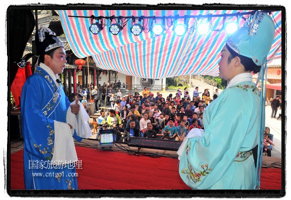 江西省婺源縣賦春鎮(zhèn)源頭村景區(qū)邀請了安徽黃梅戲劇團(tuán)在村門口為村民表演輪翻上演黃梅戲