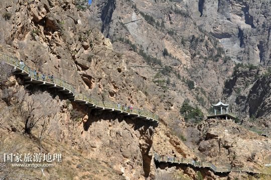 國家旅游地理 寧夏銀川5月4日訊 5月3日,游客在蘇峪口高山崖壁棧道上游覽觀光。當日是“五一”小長假的最后一天,在寧夏蘇峪口國家森林公園內(nèi),“五一”剛剛開放迎客的寧夏首座高山崖壁棧道——蘇峪口高山崖壁棧道迎來眾多游客。