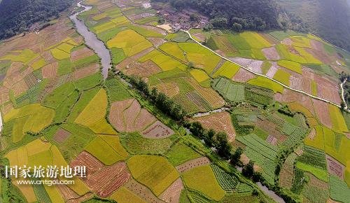 國(guó)家旅游地理 廣西柳州8月21日訊 8月20日在廣西柳州市融安縣泗頂鎮(zhèn)泗頂村航拍的田園風(fēng)光。“立秋”過后,地處桂北山區(qū)的廣西柳州市融安縣進(jìn)入稻谷收獲的季節(jié),金黃的稻田與原生態(tài)的山水風(fēng)光構(gòu)成一幅美麗的豐收?qǐng)D。新華社發(fā)(譚凱興 攝)