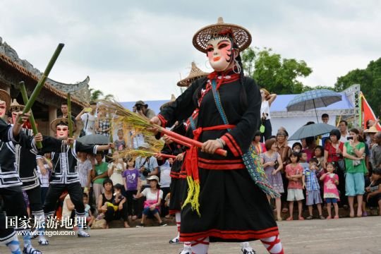 國(guó)家旅游地理 廣東云浮6月14日訊 6月13日,在廣東省郁南縣蘭寨古村,郁南縣民間藝人在表演國(guó)家級(jí)非遺郁南禾樓舞。