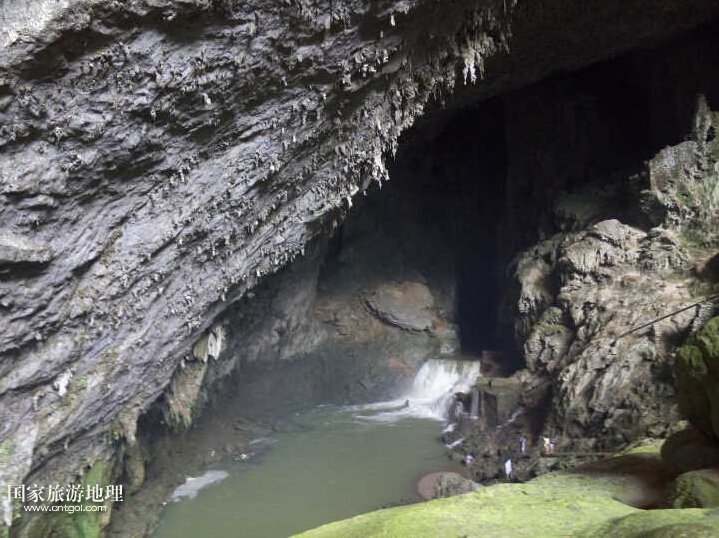 這是羅甸縣的大小井風(fēng)景區(qū)的響水洞天坑,典型的喀斯特地貌景觀。這個天坑位于大井出水口西側(cè)大約200米處,坑口高500米,寬500,深200米。內(nèi)有暗河,水聲轟鳴,在坑外十里處都可以清晰聽到,故稱為響水洞天坑坑口寬敞明亮,暗河奔流,水花飛揚,氣勢磅礴,蔚然壯觀。坑內(nèi)巨大的鐘乳石如寶劍懸掛在墻壁上,有的錯落城橋,有的如猛虎下山,千姿百態(tài),美不勝收。