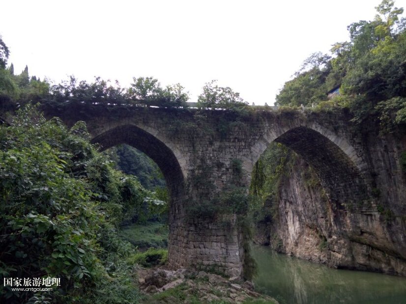 這是黔南福泉的葛鏡橋。葛鏡橋建造于明朝萬歷年間,距今已有四百多年的歷史,是當(dāng)時的平越人葛鏡出資建造。當(dāng)時造橋技術(shù)落后,加之洪水等自然因素,葛鏡造橋也費盡周折,造橋三次才最終建成葛鏡橋。葛鏡橋全長51.44米,3孔,大孔高9.61米,橋面寬8.5米,高約30米;三孔跨徑分別為25.62米、12.3米和6.26米;三孔拱高分別為9.61米、9.9米和5.02米。工程艱巨,雄偉壯觀,“為西南橋梁之冠”。葛鏡橋歷時數(shù)百年,至今仍堅固如初,實為罕見,也有“北有趙州橋、南有葛鏡橋”之稱。