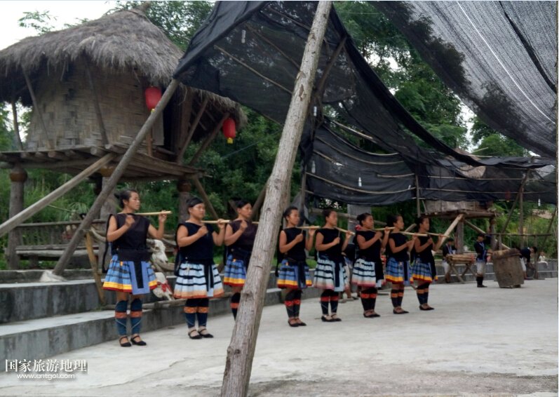 這是黔南荔波縣瑤寨姑娘在表演舞蹈。荔波瑤山白褲瑤是一個歷史悠久的古老民族,是一支長期深居高山密林,過著刀耕火種,自給自足的封閉式狩獵民族,至今仍保存著母系氏族社會向父系氏族社會過渡的遠古遺風(fēng),因其民族文化保存最完整而被聯(lián)合國科教文衛(wèi)組織賜予“人類文明的活化石”之稱。又因其崇拜太陽神,信奉百神靈,圖騰與遠在大洋彼岸的印第安人極為相似而被外界稱為“東方印第安人”。