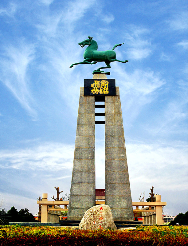 圖為中國旅游標志馬踏飛燕出土地、全國重點文物保護單位、國家4A級旅游景區(qū)——武威雷臺景區(qū)