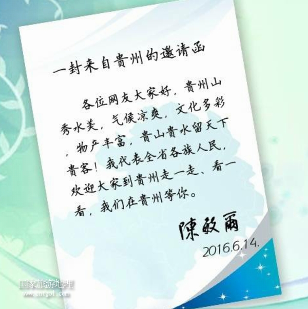 貴州省委書(shū)記陳敏爾網(wǎng)絡(luò)邀請(qǐng)大家到貴州旅游做客(圖)