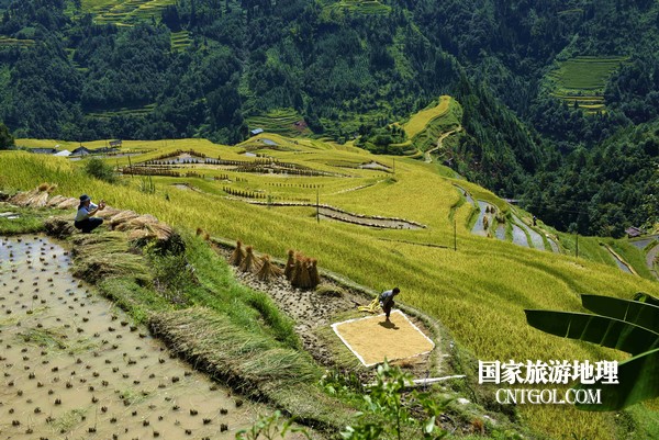 國(guó)家旅游地理貴州黔東南9月6日訊(龍夢(mèng)前 攝影報(bào)道)9月5日,貴州省黔東南苗族侗族自治州從江縣加榜鄉(xiāng)黨扭村、加頁(yè)村和加車村萬(wàn)畝水稻開(kāi)鐮收割。