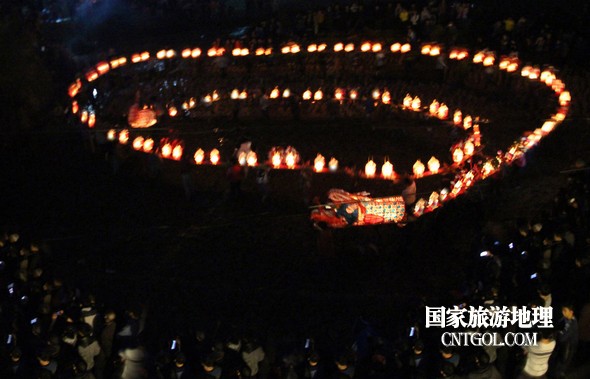 2月18日入夜,春雨霏霏。在光裕堂祖祠祭龍頭畢,鄒姓村民紛紛肩抬慶燈到祖祠接成220多米長的“龍”身。三聲銃響,游龍時而在村間慢悠游弋,時而在村道滯拔狂走,火紅的燭光伴著霏霏春雨,讓慶燈“龍”絢麗多姿,展示了“紙包火”的奇跡。 游“龍”所經(jīng)之處,鞭炮和禮花聲不絕于耳,祈求五谷豐登、吉祥如意。街巷人山人海,熱鬧非凡,一派花燈游龍慶豐收狂歡鬧元宵盛況。 吸引了海內(nèi)外游客及四鄰八鄉(xiāng)的萬余群眾紛紛前往觀看。
